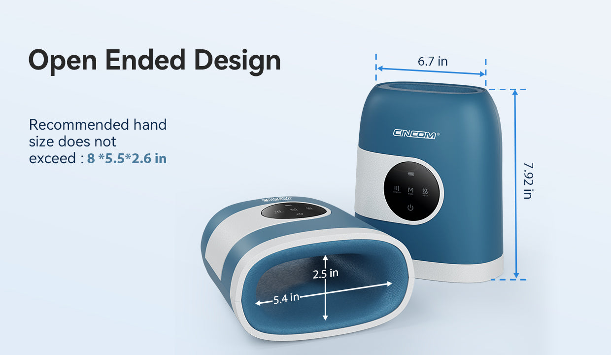Larger size with open ended design to fit most hands. Everyone can enjoy a comfortable hand massage and relaxation.