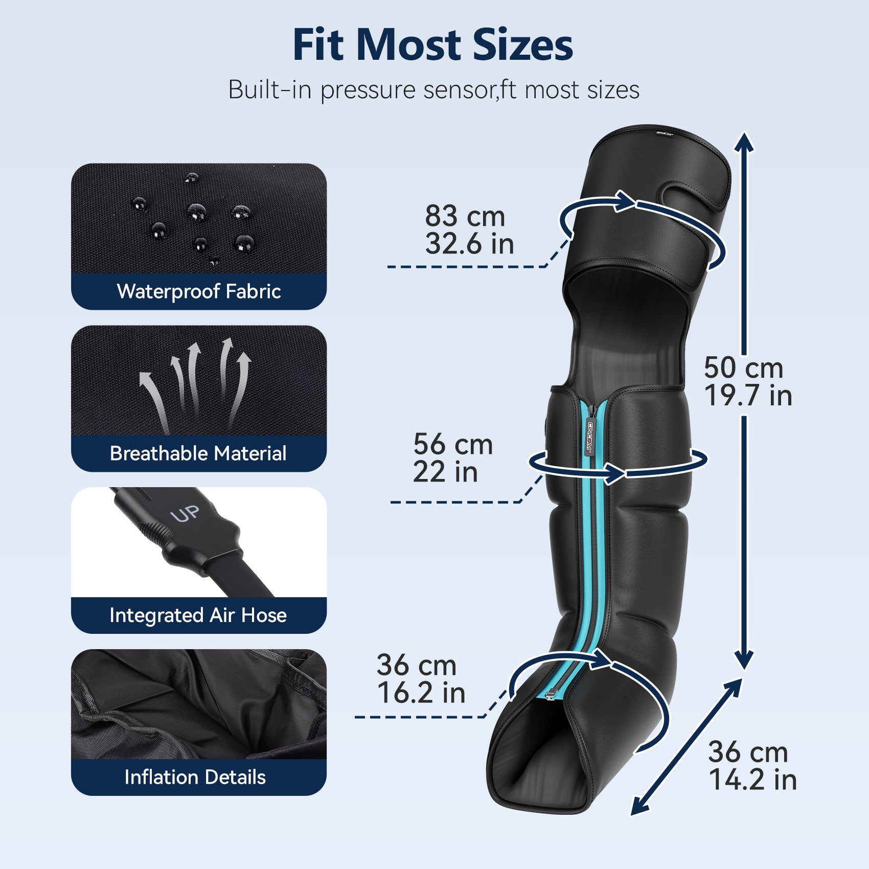 - With upgraded pressure sensor technology, different size legs can enjoy the same massager intensity.