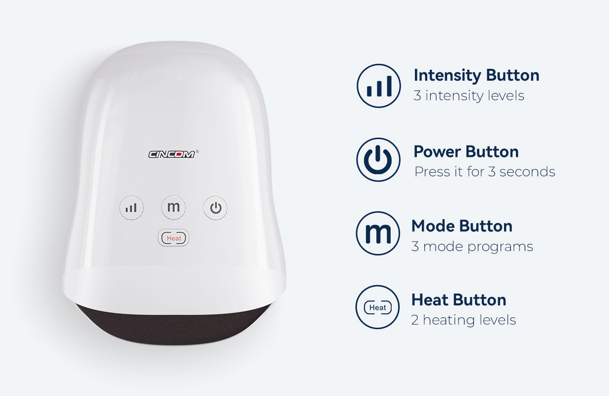 Adjustable 3 massage modes, 3 intensities and 2 heating levels meet your individual needs and comfort level.